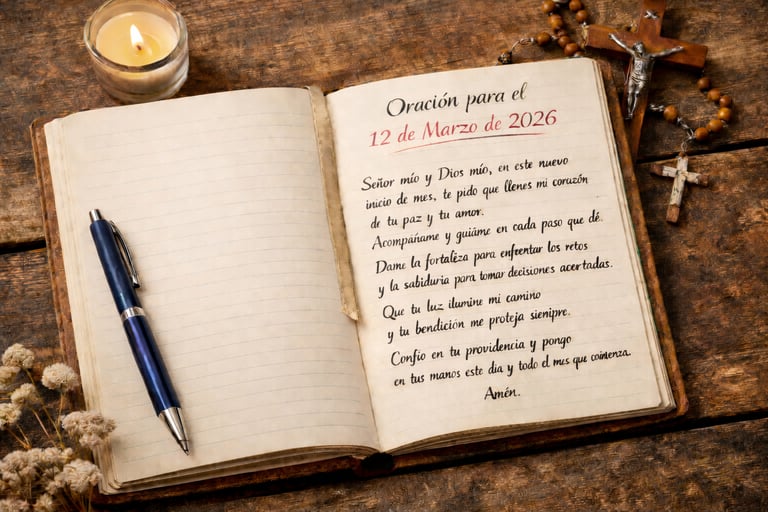 Amado Padre celestial, en este día 12 de marzo me acerco a Ti con un corazón lleno de gratitud por el regalo de la vida y por Tu amor que me acompaña cada día. Gracias por este nuevo amanecer, por la oportunidad de comenzar otra vez y por recordarme que cada día es una nueva página que puedo vivir bajo Tu guía y Tu cuidado.
